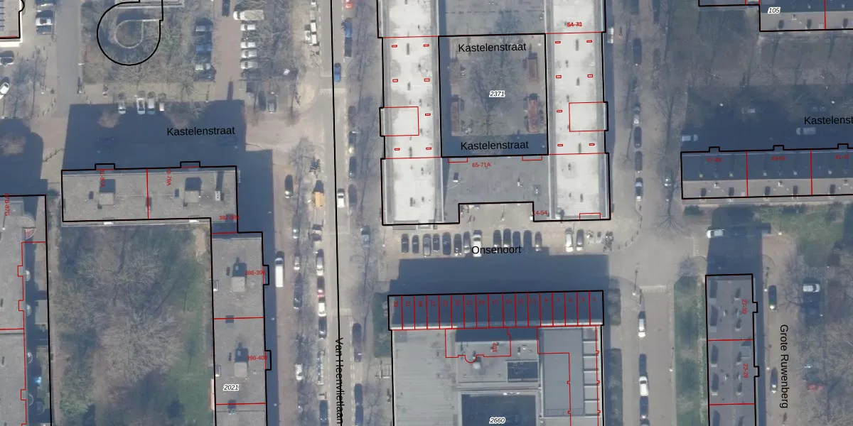 Het perceel waarop Onsenoort 54 staat heeft een oppervlakte van 2355 m². Dit is een zeer groot perceel. De perceeloppervlakte wordt geregistreerd door het Kadaster. Gedetailleerde informatie over de maten van dit perceel kunt u vinden in het rapport Kadastrale kaart met maatvoering van Onsenoort 54.