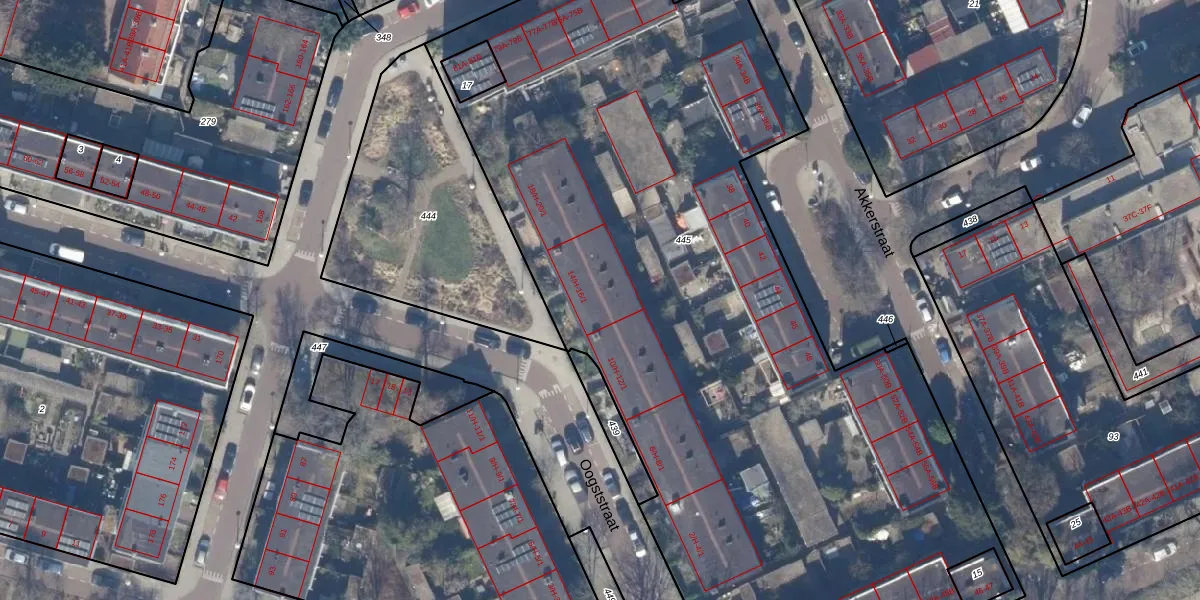 Oogststraat 14-H is gelegen op kadastraal perceel WTG02C445. Deze kadastrale aanduiding is uniek en wordt gebruikt door het Kadaster om eigendomsrechten en andere zakelijke rechten vast te leggen. Het perceel maakt onderdeel uit van de kadastrale gemeente Watergraafsmeer.