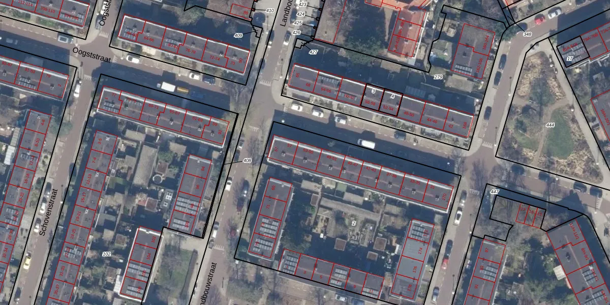 Het perceel waarop Oogststraat 53 staat heeft een oppervlakte van 2954 m². Dit is een zeer groot perceel. De perceeloppervlakte wordt geregistreerd door het Kadaster. Gedetailleerde informatie over de maten van dit perceel kunt u vinden in het rapport Kadastrale kaart met maatvoering van Oogststraat 53.