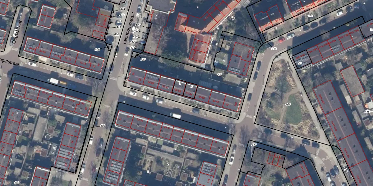 Oogststraat 54 is gelegen op kadastraal perceel WTG02C4. Deze kadastrale aanduiding is uniek en wordt gebruikt door het Kadaster om eigendomsrechten en andere zakelijke rechten vast te leggen. Het perceel maakt onderdeel uit van de kadastrale gemeente Watergraafsmeer.