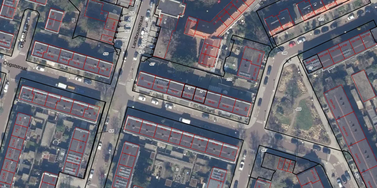 Het perceel waarop Oogststraat 56 staat heeft een oppervlakte van 46 m². Dit is een klein perceel. De perceeloppervlakte wordt geregistreerd door het Kadaster. Gedetailleerde informatie over de maten van dit perceel kunt u vinden in het rapport Kadastrale kaart met maatvoering van Oogststraat 56.