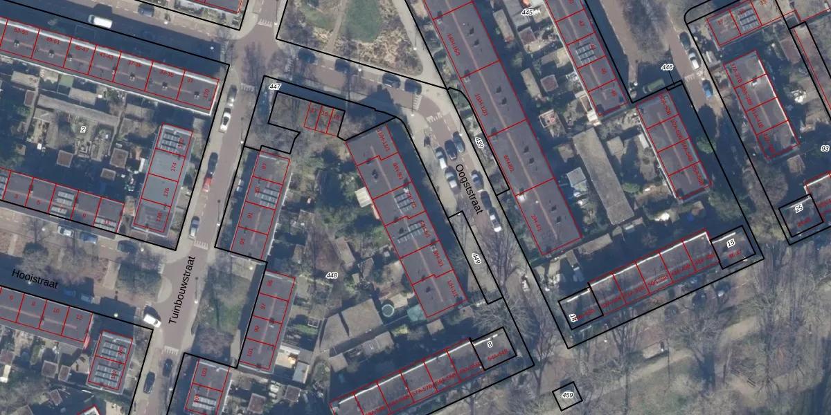 Het perceel waarop Oogststraat 7-H staat heeft een oppervlakte van 4729 m². Dit is een zeer groot perceel. De perceeloppervlakte wordt geregistreerd door het Kadaster. Gedetailleerde informatie over de maten van dit perceel kunt u vinden in het rapport Kadastrale kaart met maatvoering van Oogststraat 7-H.