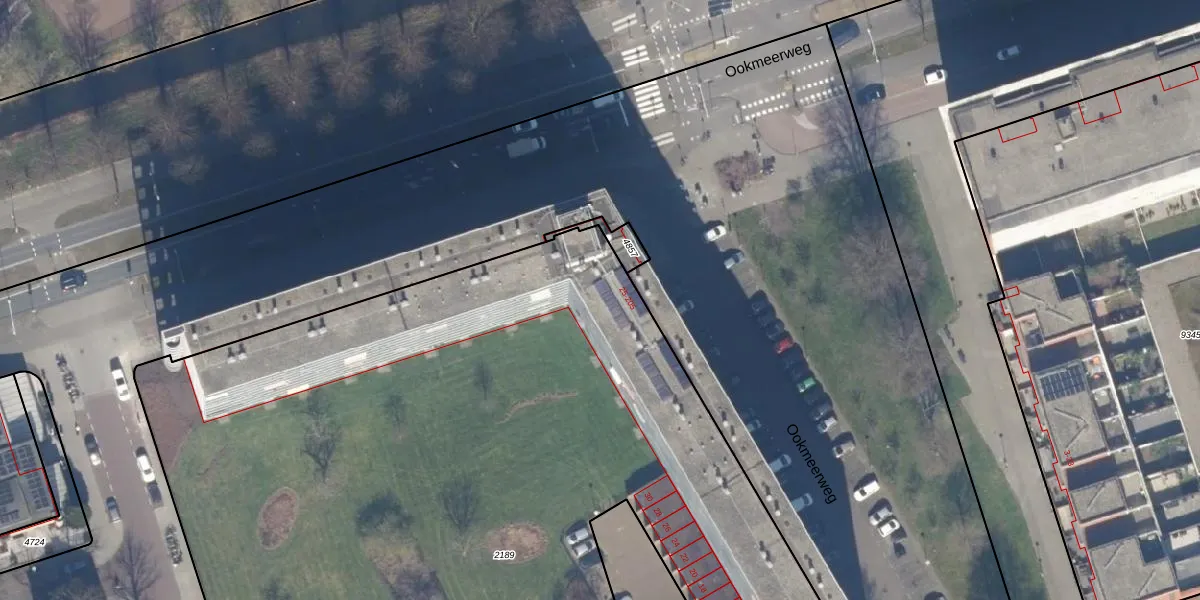 Het perceel waarop Ookmeerweg 104 staat heeft een oppervlakte van 7793 m². Dit is een zeer groot perceel. De perceeloppervlakte wordt geregistreerd door het Kadaster. Gedetailleerde informatie over de maten van dit perceel kunt u vinden in het rapport Kadastrale kaart met maatvoering van Ookmeerweg 104.