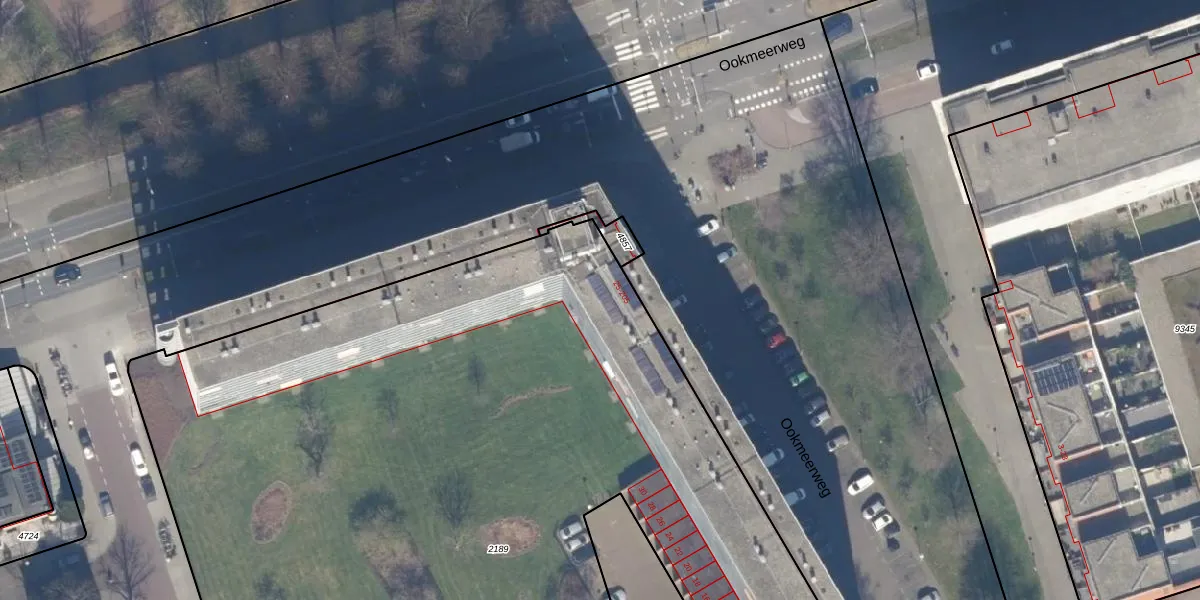 Het perceel waarop Ookmeerweg 121 staat heeft een oppervlakte van 7793 m². Dit is een zeer groot perceel. De perceeloppervlakte wordt geregistreerd door het Kadaster. Gedetailleerde informatie over de maten van dit perceel kunt u vinden in het rapport Kadastrale kaart met maatvoering van Ookmeerweg 121.