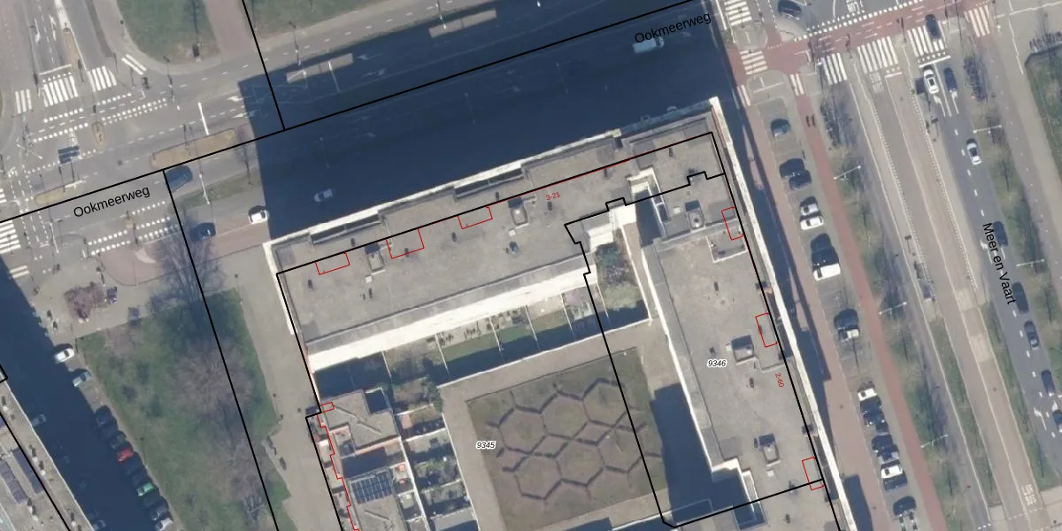 Het perceel waarop Ookmeerweg 19-B staat heeft een oppervlakte van 5659 m². Dit is een zeer groot perceel. De perceeloppervlakte wordt geregistreerd door het Kadaster. Gedetailleerde informatie over de maten van dit perceel kunt u vinden in het rapport Kadastrale kaart met maatvoering van Ookmeerweg 19-B.