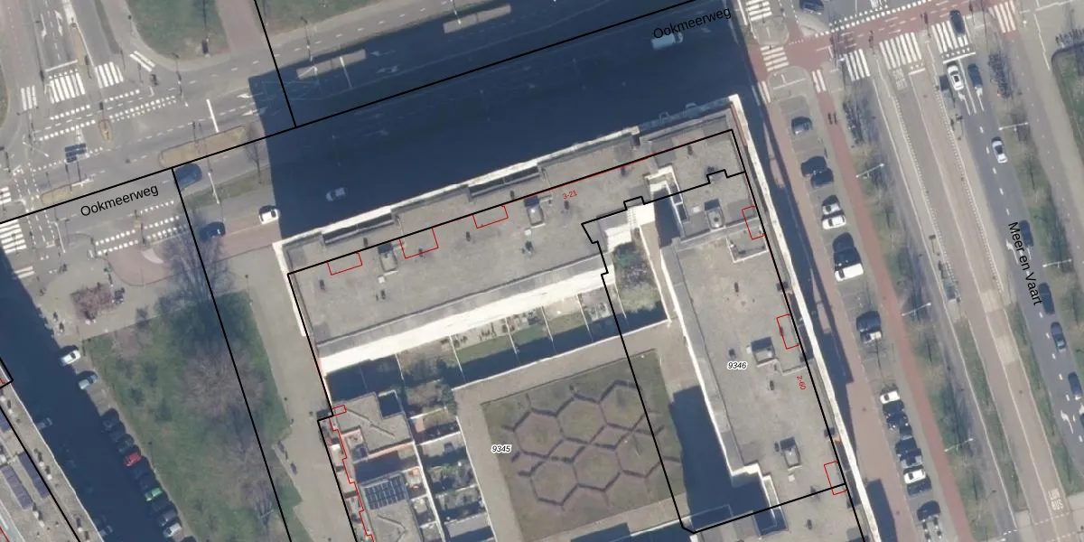 Het perceel waarop Ookmeerweg 19-D staat heeft een oppervlakte van 5659 m². Dit is een zeer groot perceel. De perceeloppervlakte wordt geregistreerd door het Kadaster. Gedetailleerde informatie over de maten van dit perceel kunt u vinden in het rapport Kadastrale kaart met maatvoering van Ookmeerweg 19-D.