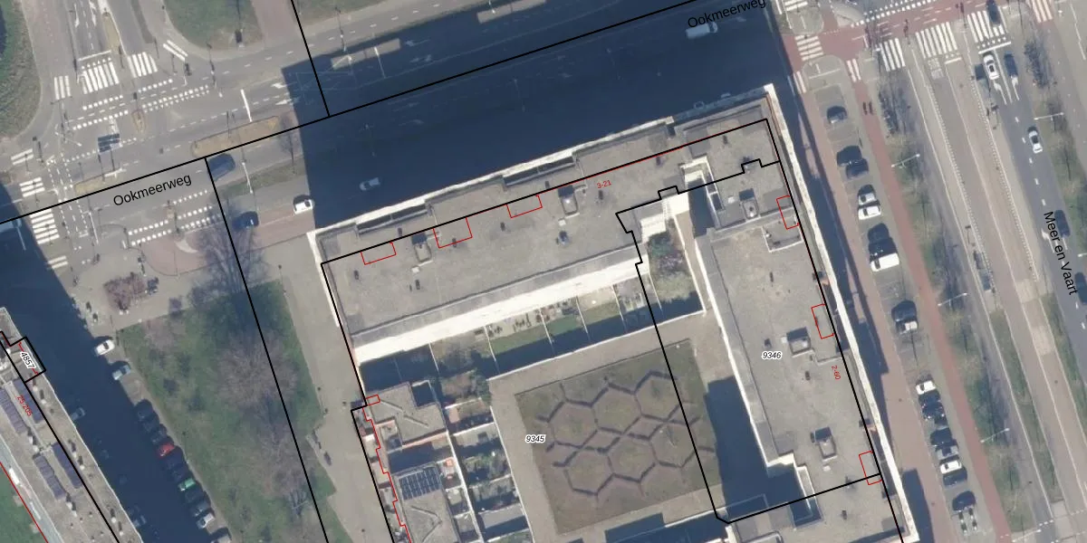 Het perceel waarop Ookmeerweg 20-B staat heeft een oppervlakte van 5659 m². Dit is een zeer groot perceel. De perceeloppervlakte wordt geregistreerd door het Kadaster. Gedetailleerde informatie over de maten van dit perceel kunt u vinden in het rapport Kadastrale kaart met maatvoering van Ookmeerweg 20-B.