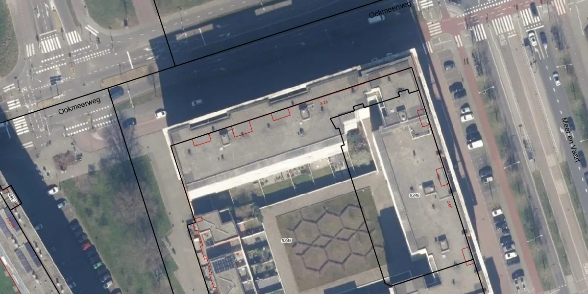 Het perceel waarop Ookmeerweg 21 staat heeft een oppervlakte van 5659 m². Dit is een zeer groot perceel. De perceeloppervlakte wordt geregistreerd door het Kadaster. Gedetailleerde informatie over de maten van dit perceel kunt u vinden in het rapport Kadastrale kaart met maatvoering van Ookmeerweg 21.