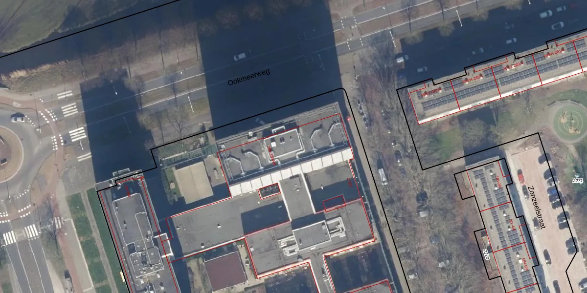 Het perceel waarop Ookmeerweg 268-A-15 staat heeft een oppervlakte van 1,2 ha. Dit is een zeer groot perceel. De perceeloppervlakte wordt geregistreerd door het Kadaster. Gedetailleerde informatie over de maten van dit perceel kunt u vinden in het rapport Kadastrale kaart met maatvoering van Ookmeerweg 268-A-15.