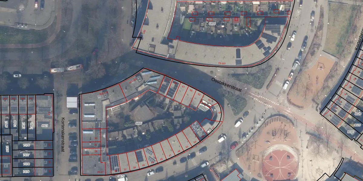 Oostakkerstraat 67 is gelegen op kadastraal perceel STN02E6895. Deze kadastrale aanduiding is uniek en wordt gebruikt door het Kadaster om eigendomsrechten en andere zakelijke rechten vast te leggen. Het perceel maakt onderdeel uit van de kadastrale gemeente Sloten Noord-Holland.