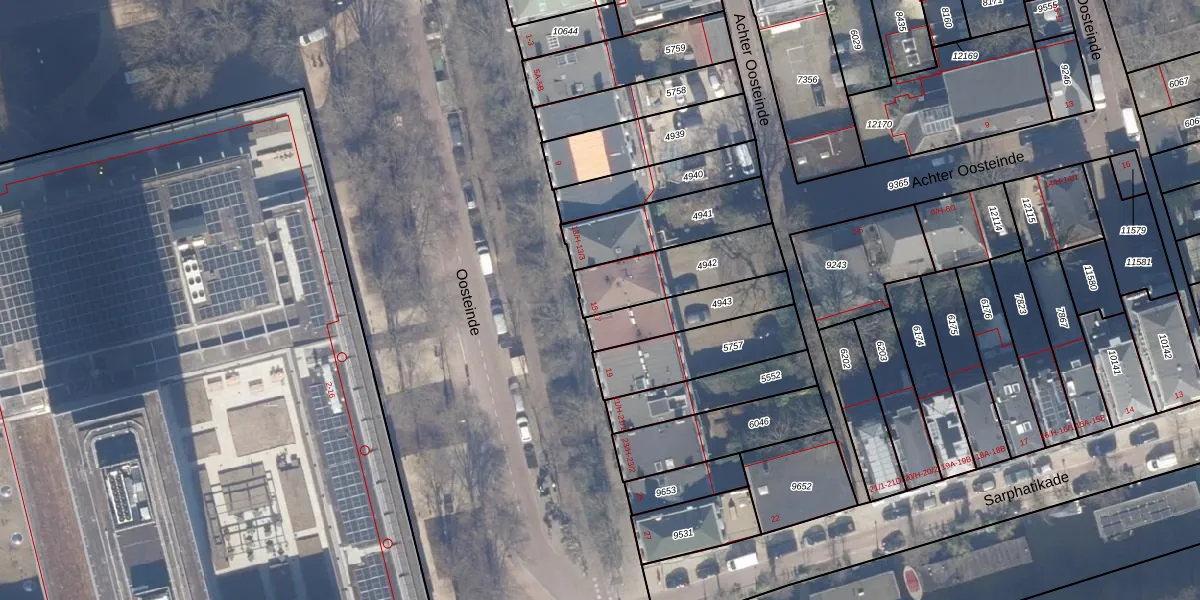 Oosteinde 15 is gelegen op kadastraal perceel ASD06I4942. Deze kadastrale aanduiding is uniek en wordt gebruikt door het Kadaster om eigendomsrechten en andere zakelijke rechten vast te leggen. Het perceel maakt onderdeel uit van de kadastrale gemeente Amsterdam.
