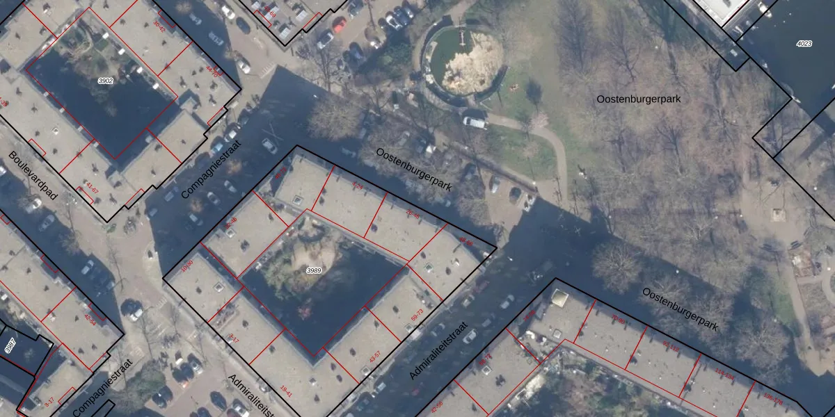 Het perceel waarop Oostenburgerpark 38 staat heeft een oppervlakte van 2753 m². Dit is een zeer groot perceel. De perceeloppervlakte wordt geregistreerd door het Kadaster. Gedetailleerde informatie over de maten van dit perceel kunt u vinden in het rapport Kadastrale kaart met maatvoering van Oostenburgerpark 38.