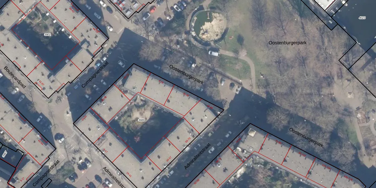 Het perceel waarop Oostenburgerpark 42 staat heeft een oppervlakte van 2753 m². Dit is een zeer groot perceel. De perceeloppervlakte wordt geregistreerd door het Kadaster. Gedetailleerde informatie over de maten van dit perceel kunt u vinden in het rapport Kadastrale kaart met maatvoering van Oostenburgerpark 42.