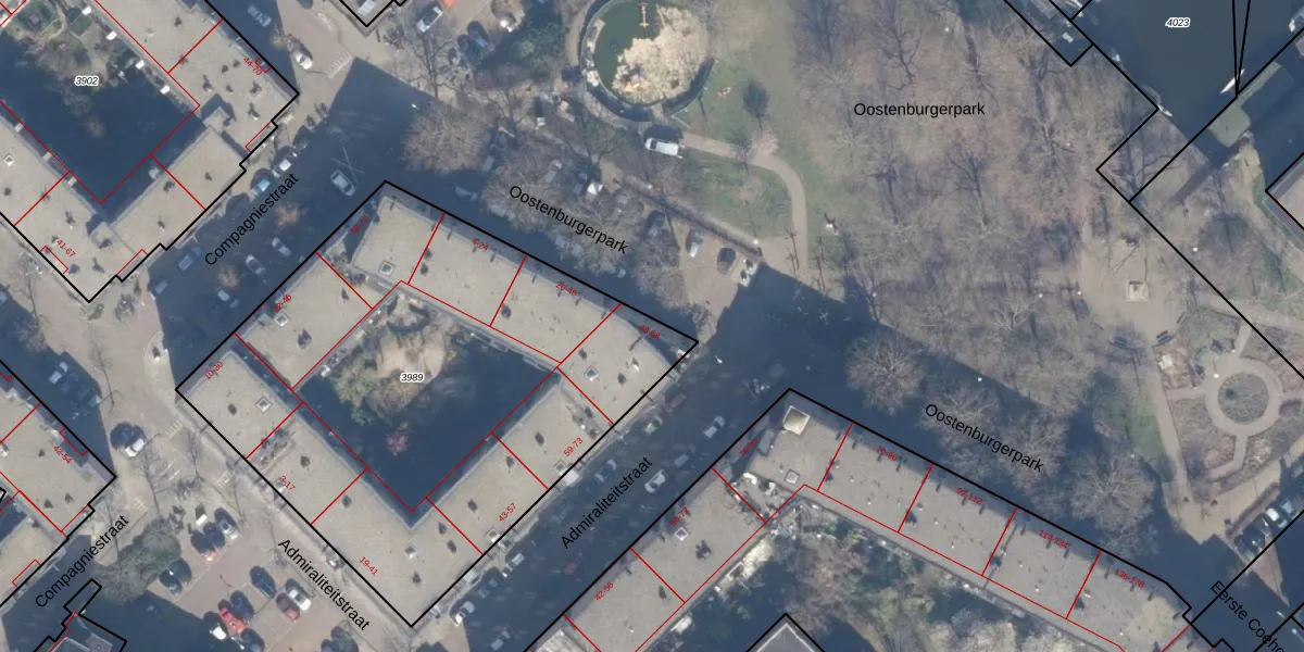 Het perceel waarop Oostenburgerpark 56 staat heeft een oppervlakte van 2753 m². Dit is een zeer groot perceel. De perceeloppervlakte wordt geregistreerd door het Kadaster. Gedetailleerde informatie over de maten van dit perceel kunt u vinden in het rapport Kadastrale kaart met maatvoering van Oostenburgerpark 56.