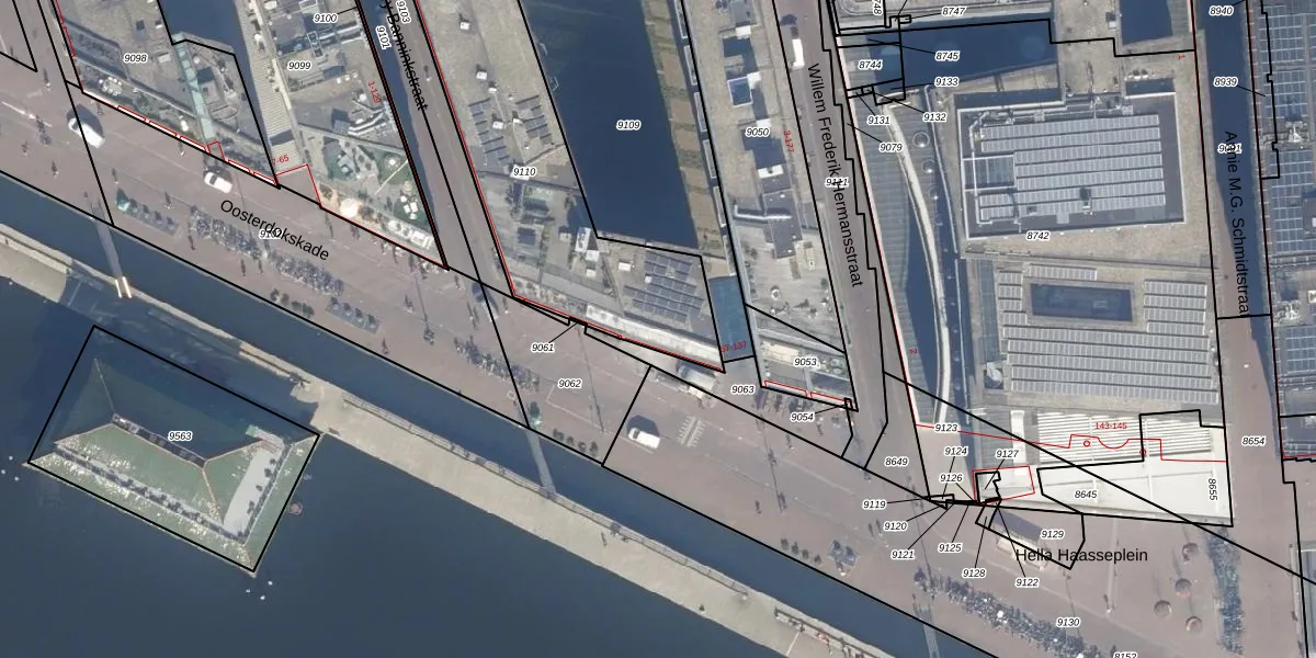 Oosterdokskade 107 is gelegen op kadastraal perceel ASD05G9110. Deze kadastrale aanduiding is uniek en wordt gebruikt door het Kadaster om eigendomsrechten en andere zakelijke rechten vast te leggen. Het perceel maakt onderdeel uit van de kadastrale gemeente Amsterdam.
