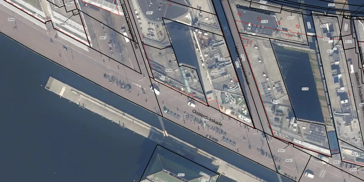 Oosterdokskade 33 is gelegen op kadastraal perceel ASD05G9098. Deze kadastrale aanduiding is uniek en wordt gebruikt door het Kadaster om eigendomsrechten en andere zakelijke rechten vast te leggen. Het perceel maakt onderdeel uit van de kadastrale gemeente Amsterdam.