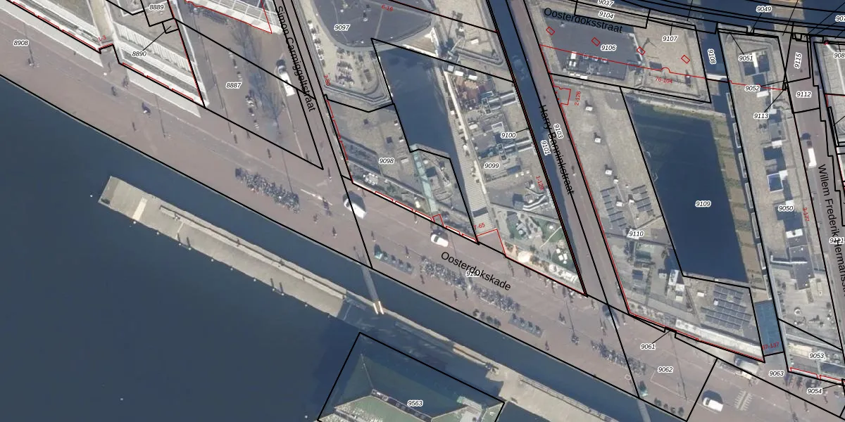 Oosterdokskade 35 is gelegen op kadastraal perceel ASD05G9098. Deze kadastrale aanduiding is uniek en wordt gebruikt door het Kadaster om eigendomsrechten en andere zakelijke rechten vast te leggen. Het perceel maakt onderdeel uit van de kadastrale gemeente Amsterdam.