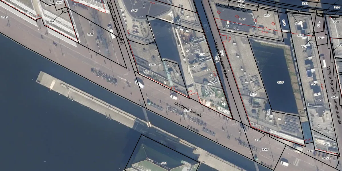 Het perceel waarop Oosterdokskade 39 staat heeft een oppervlakte van 536 m². Dit is een groot perceel. De perceeloppervlakte wordt geregistreerd door het Kadaster. Gedetailleerde informatie over de maten van dit perceel kunt u vinden in het rapport Kadastrale kaart met maatvoering van Oosterdokskade 39.