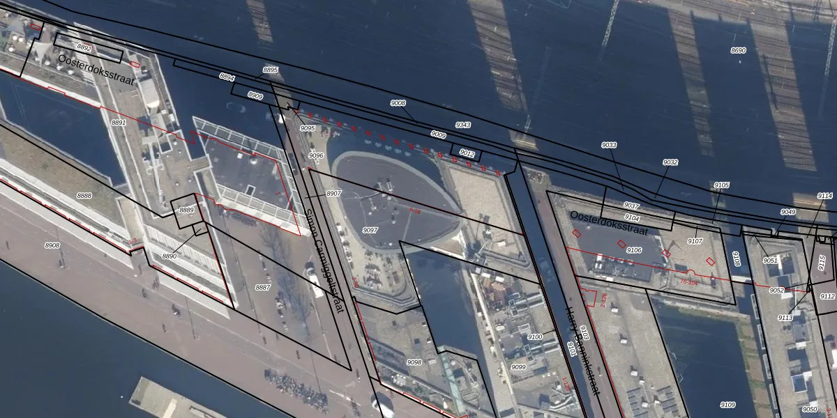 Het perceel waarop Oosterdoksstraat 12 staat heeft een oppervlakte van 841 m². Dit is een groot perceel. De perceeloppervlakte wordt geregistreerd door het Kadaster. Gedetailleerde informatie over de maten van dit perceel kunt u vinden in het rapport Kadastrale kaart met maatvoering van Oosterdoksstraat 12.