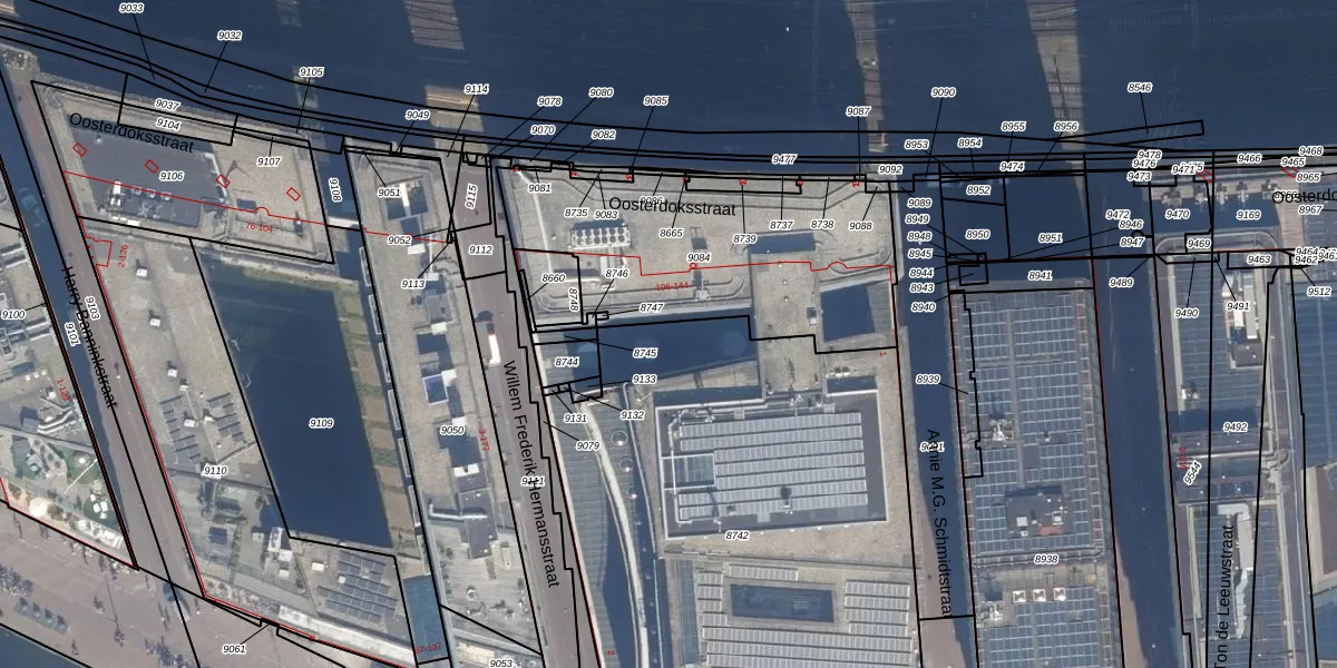 Het perceel waarop Oosterdoksstraat 124 staat heeft een oppervlakte van 2974 m². Dit is een zeer groot perceel. De perceeloppervlakte wordt geregistreerd door het Kadaster. Gedetailleerde informatie over de maten van dit perceel kunt u vinden in het rapport Kadastrale kaart met maatvoering van Oosterdoksstraat 124.