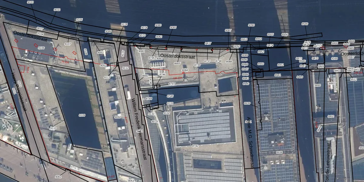 Het perceel waarop Oosterdoksstraat 130 staat heeft een oppervlakte van 2974 m². Dit is een zeer groot perceel. De perceeloppervlakte wordt geregistreerd door het Kadaster. Gedetailleerde informatie over de maten van dit perceel kunt u vinden in het rapport Kadastrale kaart met maatvoering van Oosterdoksstraat 130.