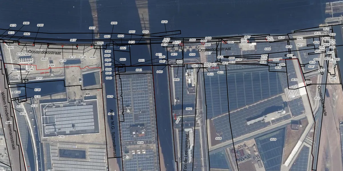 Het perceel waarop Oosterdoksstraat 150 staat heeft een oppervlakte van 411 m². Dit is een groot perceel. De perceeloppervlakte wordt geregistreerd door het Kadaster. Gedetailleerde informatie over de maten van dit perceel kunt u vinden in het rapport Kadastrale kaart met maatvoering van Oosterdoksstraat 150.