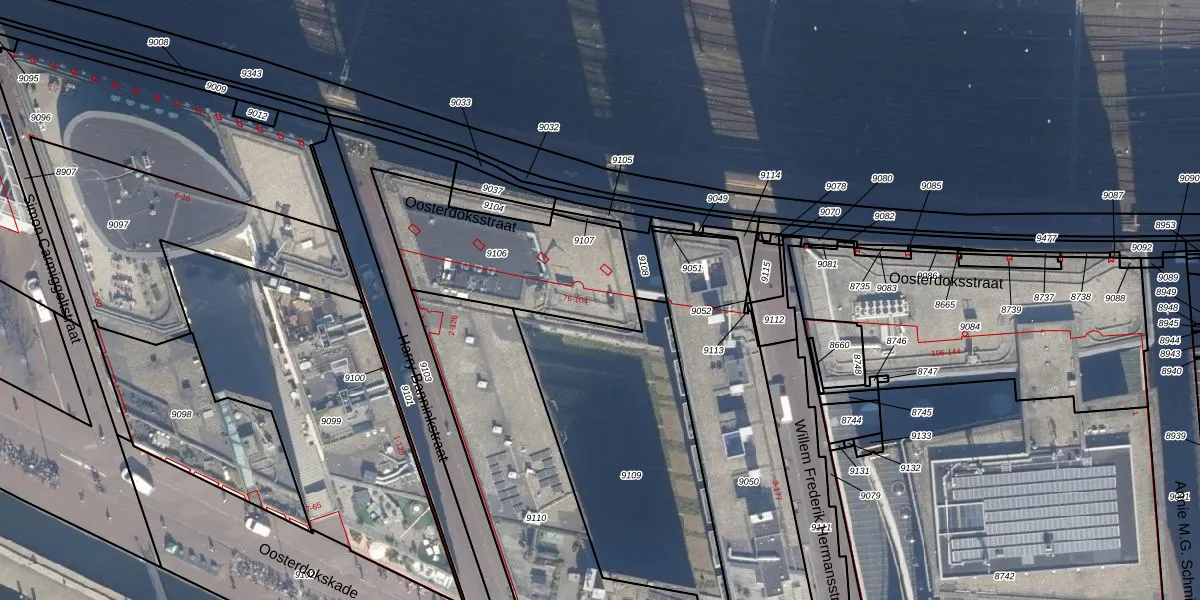 Oosterdoksstraat 76 is gelegen op kadastraal perceel ASD05G9106. Deze kadastrale aanduiding is uniek en wordt gebruikt door het Kadaster om eigendomsrechten en andere zakelijke rechten vast te leggen. Het perceel maakt onderdeel uit van de kadastrale gemeente Amsterdam.