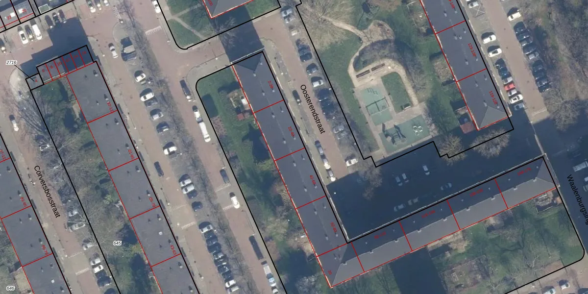 Oosterendstraat 40 is gelegen op kadastraal perceel ASD31AL2843. Deze kadastrale aanduiding is uniek en wordt gebruikt door het Kadaster om eigendomsrechten en andere zakelijke rechten vast te leggen. Het perceel maakt onderdeel uit van de kadastrale gemeente Amsterdam.