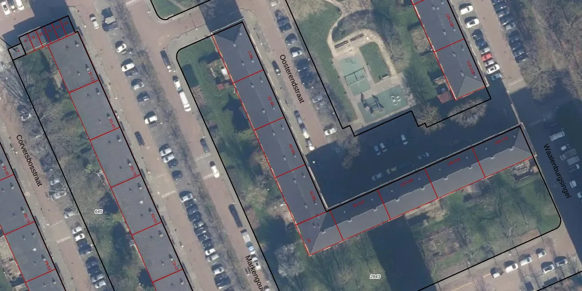 Oosterendstraat 56 is gelegen op kadastraal perceel ASD31AL2843. Deze kadastrale aanduiding is uniek en wordt gebruikt door het Kadaster om eigendomsrechten en andere zakelijke rechten vast te leggen. Het perceel maakt onderdeel uit van de kadastrale gemeente Amsterdam.