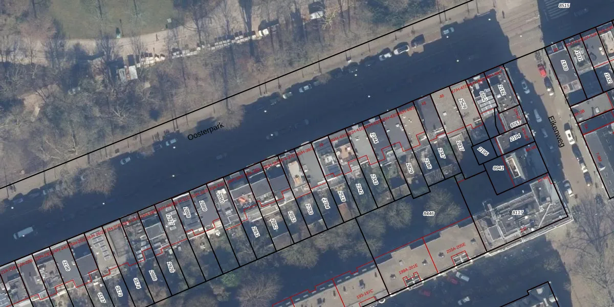 Het perceel waarop Oosterpark 38-2 staat heeft een oppervlakte van 161 m². Dit is een middelgroot perceel. De perceeloppervlakte wordt geregistreerd door het Kadaster. Gedetailleerde informatie over de maten van dit perceel kunt u vinden in het rapport Kadastrale kaart met maatvoering van Oosterpark 38-2.