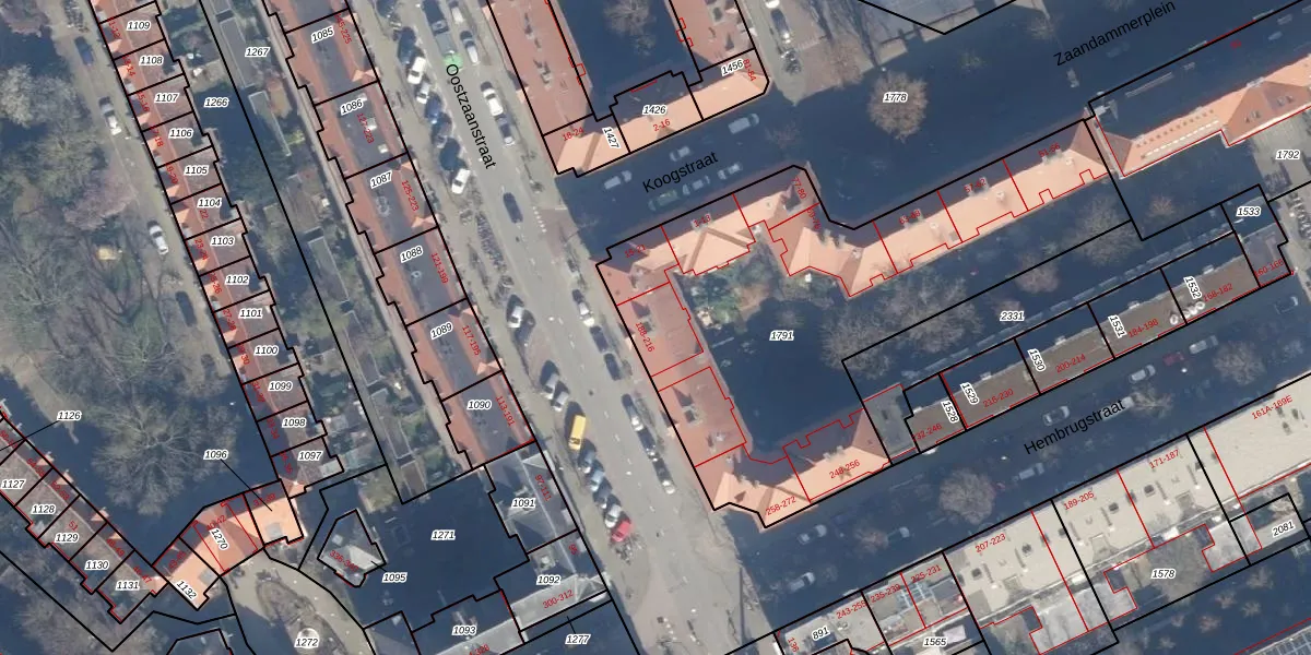 Het perceel waarop Oostzaanstraat 210 staat heeft een oppervlakte van 2256 m². Dit is een zeer groot perceel. De perceeloppervlakte wordt geregistreerd door het Kadaster. Gedetailleerde informatie over de maten van dit perceel kunt u vinden in het rapport Kadastrale kaart met maatvoering van Oostzaanstraat 210.