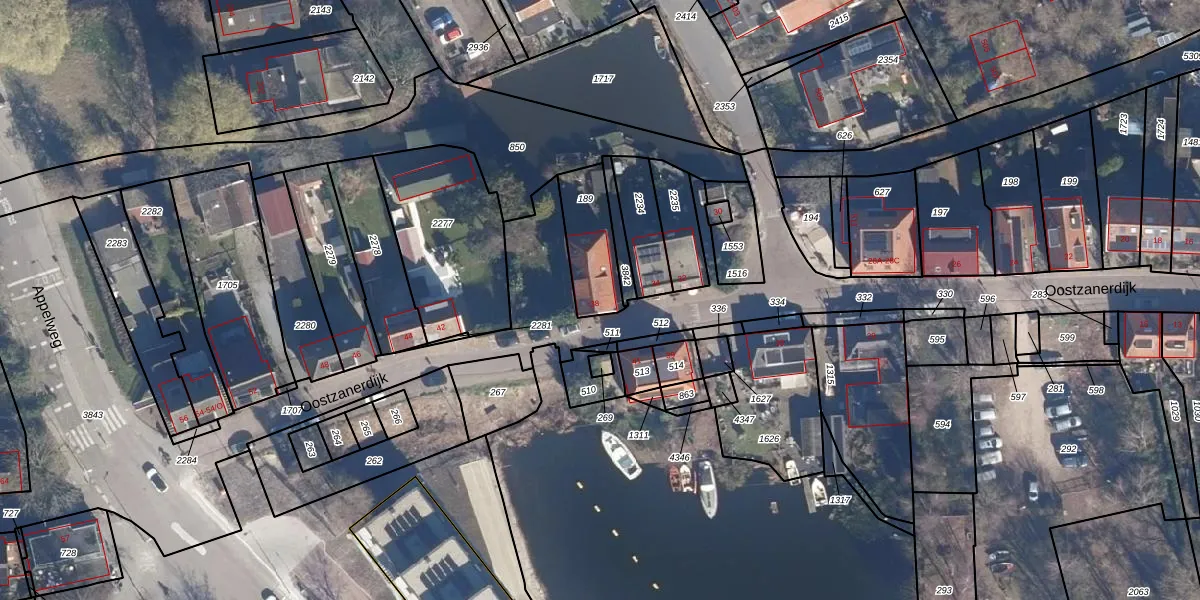 Gebruik de zoekbalk of klik op een perceel voor informatie over de adressen binnen dit perceel.