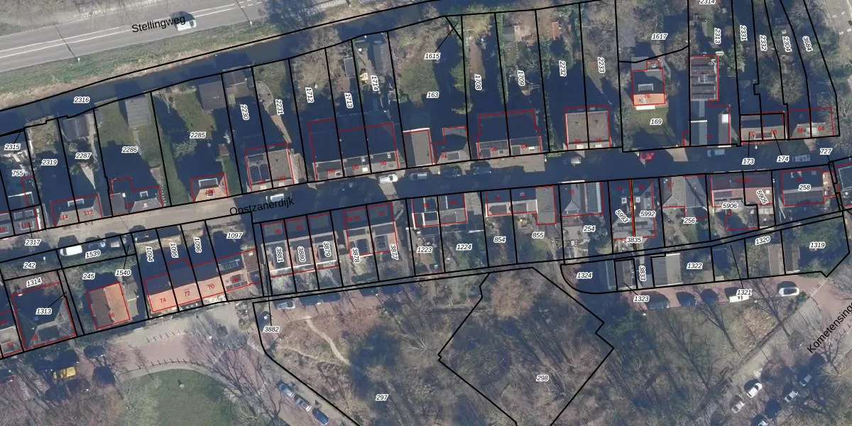 Gebruik de zoekbalk of klik op een perceel voor informatie over de adressen binnen dit perceel.