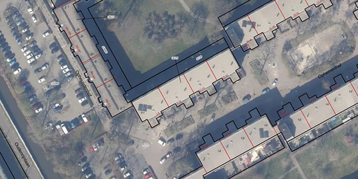 Het perceel waarop Ophemerthof 14 staat heeft een oppervlakte van 965 m². Dit is een groot perceel. De perceeloppervlakte wordt geregistreerd door het Kadaster. Gedetailleerde informatie over de maten van dit perceel kunt u vinden in het rapport Kadastrale kaart met maatvoering van Ophemerthof 14.