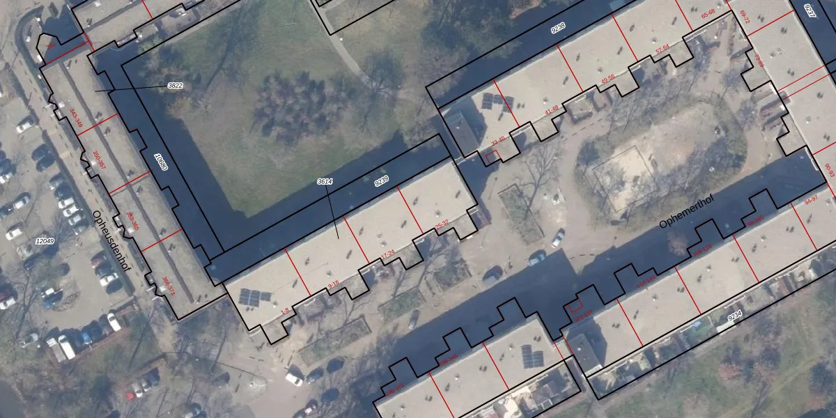 Het perceel waarop Ophemerthof 26 staat heeft een oppervlakte van 965 m². Dit is een groot perceel. De perceeloppervlakte wordt geregistreerd door het Kadaster. Gedetailleerde informatie over de maten van dit perceel kunt u vinden in het rapport Kadastrale kaart met maatvoering van Ophemerthof 26.