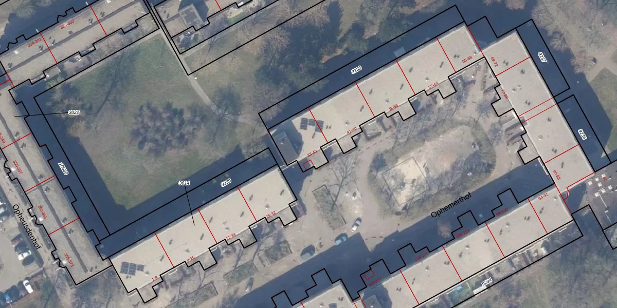 Het perceel waarop Ophemerthof 33 staat heeft een oppervlakte van 1,2 ha. Dit is een zeer groot perceel. De perceeloppervlakte wordt geregistreerd door het Kadaster. Gedetailleerde informatie over de maten van dit perceel kunt u vinden in het rapport Kadastrale kaart met maatvoering van Ophemerthof 33.