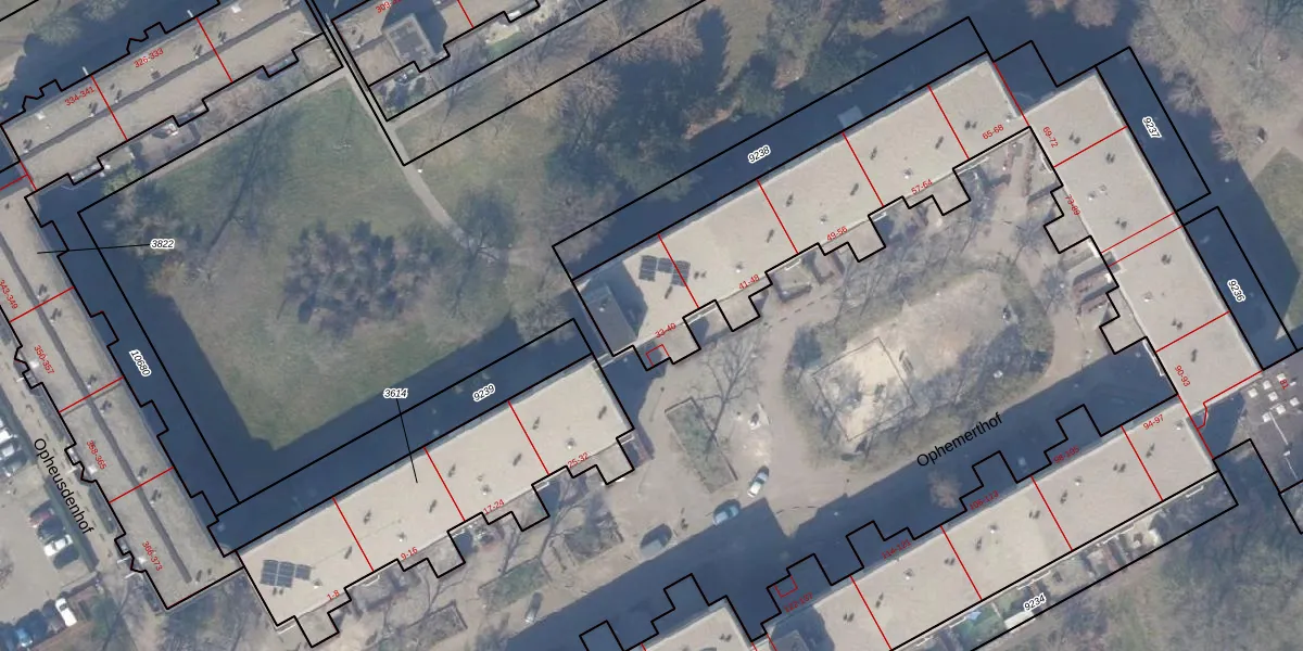 Het perceel waarop Ophemerthof 34 staat heeft een oppervlakte van 1,2 ha. Dit is een zeer groot perceel. De perceeloppervlakte wordt geregistreerd door het Kadaster. Gedetailleerde informatie over de maten van dit perceel kunt u vinden in het rapport Kadastrale kaart met maatvoering van Ophemerthof 34.