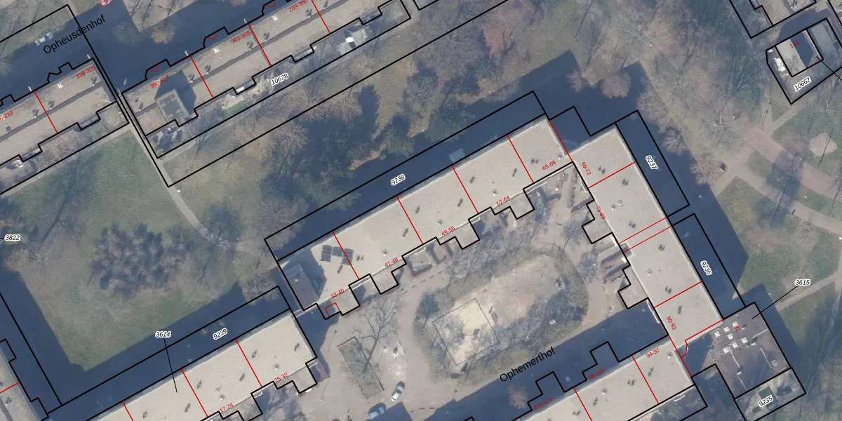 Het perceel waarop Ophemerthof 50 staat heeft een oppervlakte van 1,2 ha. Dit is een zeer groot perceel. De perceeloppervlakte wordt geregistreerd door het Kadaster. Gedetailleerde informatie over de maten van dit perceel kunt u vinden in het rapport Kadastrale kaart met maatvoering van Ophemerthof 50.