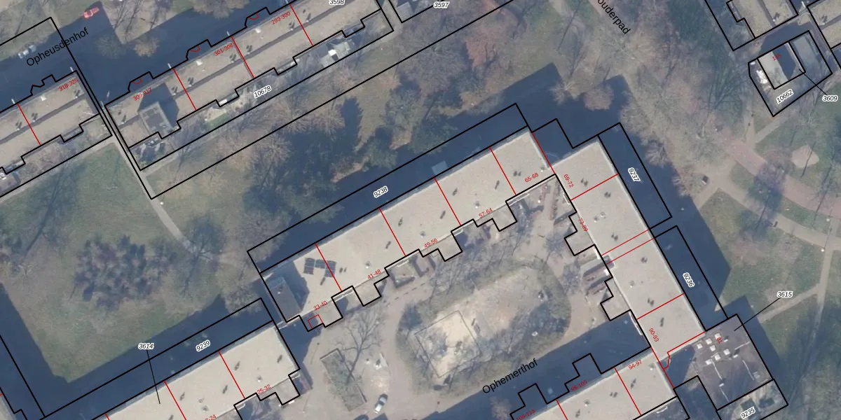 Het perceel waarop Ophemerthof 53 staat heeft een oppervlakte van 1,2 ha. Dit is een zeer groot perceel. De perceeloppervlakte wordt geregistreerd door het Kadaster. Gedetailleerde informatie over de maten van dit perceel kunt u vinden in het rapport Kadastrale kaart met maatvoering van Ophemerthof 53.