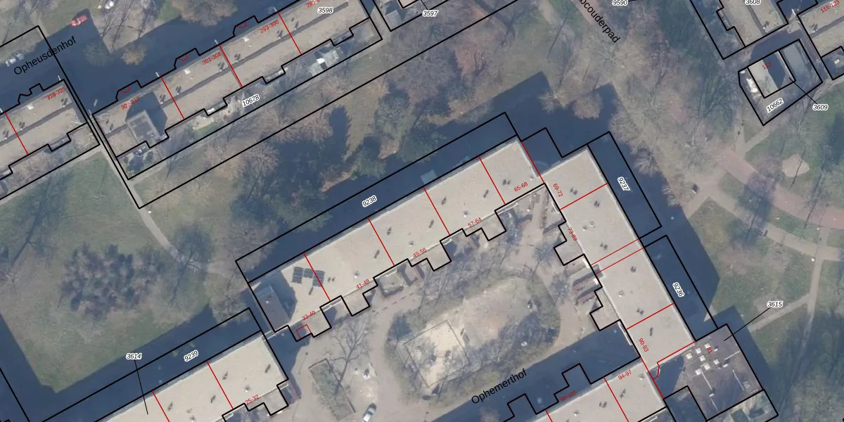 Het perceel waarop Ophemerthof 55 staat heeft een oppervlakte van 1,2 ha. Dit is een zeer groot perceel. De perceeloppervlakte wordt geregistreerd door het Kadaster. Gedetailleerde informatie over de maten van dit perceel kunt u vinden in het rapport Kadastrale kaart met maatvoering van Ophemerthof 55.