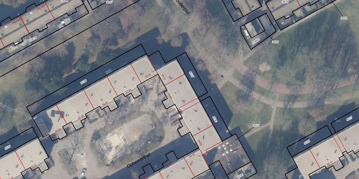 Het perceel waarop Ophemerthof 78 staat heeft een oppervlakte van 1,2 ha. Dit is een zeer groot perceel. De perceeloppervlakte wordt geregistreerd door het Kadaster. Gedetailleerde informatie over de maten van dit perceel kunt u vinden in het rapport Kadastrale kaart met maatvoering van Ophemerthof 78.