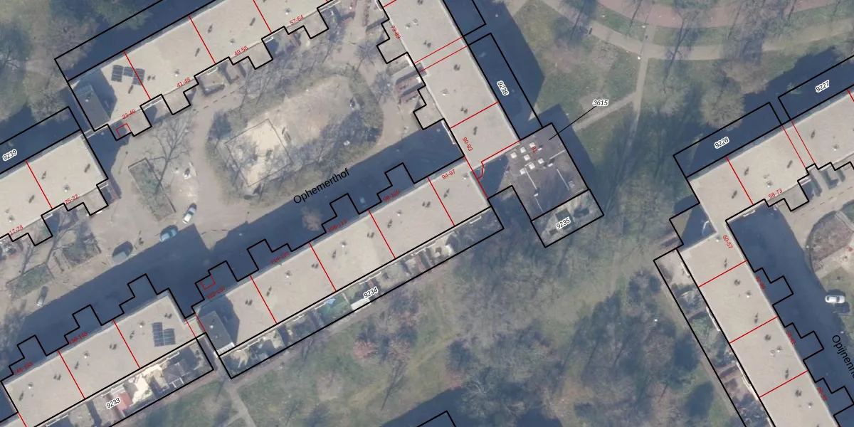Het perceel waarop Ophemerthof 99 staat heeft een oppervlakte van 1,2 ha. Dit is een zeer groot perceel. De perceeloppervlakte wordt geregistreerd door het Kadaster. Gedetailleerde informatie over de maten van dit perceel kunt u vinden in het rapport Kadastrale kaart met maatvoering van Ophemerthof 99.