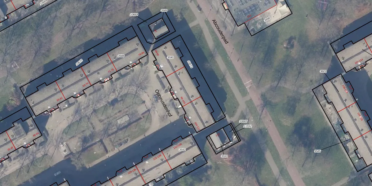 Het perceel waarop Opheusdenhof 102 staat heeft een oppervlakte van 649 m². Dit is een groot perceel. De perceeloppervlakte wordt geregistreerd door het Kadaster. Gedetailleerde informatie over de maten van dit perceel kunt u vinden in het rapport Kadastrale kaart met maatvoering van Opheusdenhof 102.