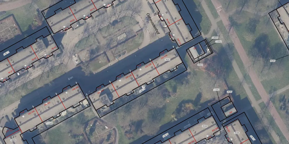 Het perceel waarop Opheusdenhof 126 staat heeft een oppervlakte van 884 m². Dit is een groot perceel. De perceeloppervlakte wordt geregistreerd door het Kadaster. Gedetailleerde informatie over de maten van dit perceel kunt u vinden in het rapport Kadastrale kaart met maatvoering van Opheusdenhof 126.