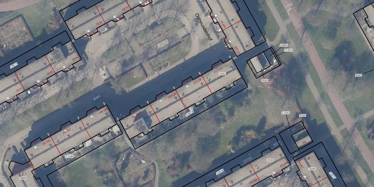 Het perceel waarop Opheusdenhof 128 staat heeft een oppervlakte van 884 m². Dit is een groot perceel. De perceeloppervlakte wordt geregistreerd door het Kadaster. Gedetailleerde informatie over de maten van dit perceel kunt u vinden in het rapport Kadastrale kaart met maatvoering van Opheusdenhof 128.