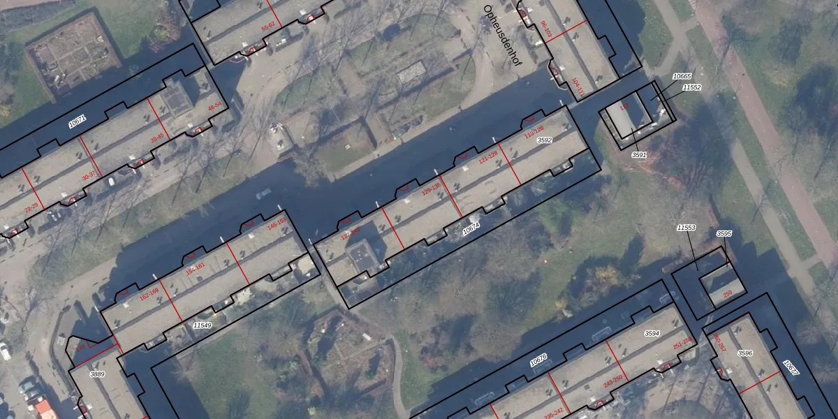 Het perceel waarop Opheusdenhof 135 staat heeft een oppervlakte van 884 m². Dit is een groot perceel. De perceeloppervlakte wordt geregistreerd door het Kadaster. Gedetailleerde informatie over de maten van dit perceel kunt u vinden in het rapport Kadastrale kaart met maatvoering van Opheusdenhof 135.
