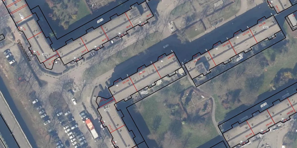 Het perceel waarop Opheusdenhof 156 staat heeft een oppervlakte van 1147 m². Dit is een zeer groot perceel. De perceeloppervlakte wordt geregistreerd door het Kadaster. Gedetailleerde informatie over de maten van dit perceel kunt u vinden in het rapport Kadastrale kaart met maatvoering van Opheusdenhof 156.