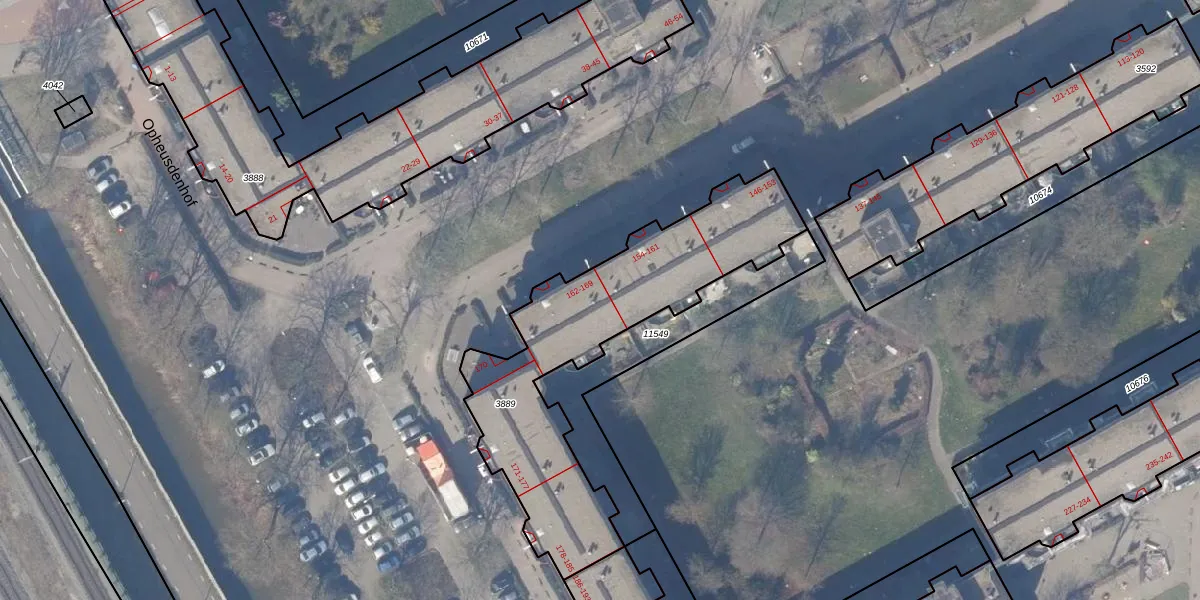 Het perceel waarop Opheusdenhof 163 staat heeft een oppervlakte van 1147 m². Dit is een zeer groot perceel. De perceeloppervlakte wordt geregistreerd door het Kadaster. Gedetailleerde informatie over de maten van dit perceel kunt u vinden in het rapport Kadastrale kaart met maatvoering van Opheusdenhof 163.
