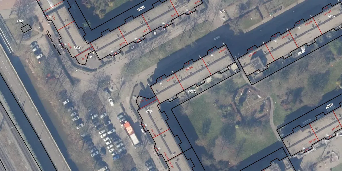 Het perceel waarop Opheusdenhof 165 staat heeft een oppervlakte van 1147 m². Dit is een zeer groot perceel. De perceeloppervlakte wordt geregistreerd door het Kadaster. Gedetailleerde informatie over de maten van dit perceel kunt u vinden in het rapport Kadastrale kaart met maatvoering van Opheusdenhof 165.