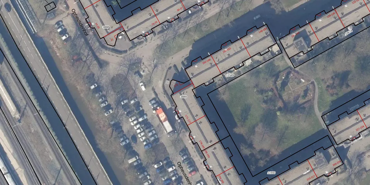 Het perceel waarop Opheusdenhof 171 staat heeft een oppervlakte van 1147 m². Dit is een zeer groot perceel. De perceeloppervlakte wordt geregistreerd door het Kadaster. Gedetailleerde informatie over de maten van dit perceel kunt u vinden in het rapport Kadastrale kaart met maatvoering van Opheusdenhof 171.